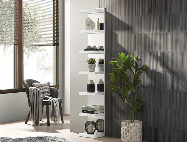 This sleek, modern shelving unit offers a perfect blend of style and functionality, making it a versatile addition to any room. With clean, minimalist lines and a crisp, white finish, it seamlessly complements contemporary decor, adding a touch of elegance and sophistication to your space. Each spacious shelf is designed to showcase your favorite decorative pieces, plants, or books, providing a visually appealing display while maintaining an open and airy feel. The mirrored back lets you see more of your treasures and bounces light around the room. Its sturdy structure ensures stability, allowing you to store and exhibit items confidently. Ideal for living rooms, home offices, or reading nooks, this shelving unit enhances any space with its refined aesthetic and practical design, embodying both beauty and utility in one piece.